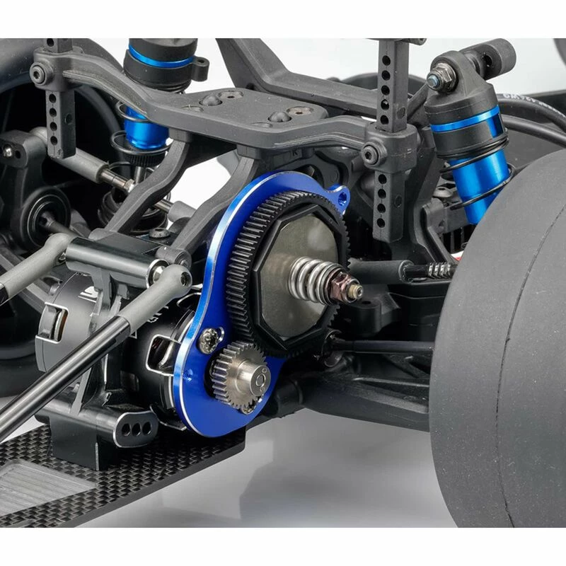 Looking at the typical construction of the second operation processes on standard motor plates, it easy to see why bending is sometimes an issue. The design team at JConcepts has incorporated a honeycomb milling affect with placement more suited to surrounding geometry making the plate lightweight and very rigid in multiple directions. The honeycomb features add a 3D look featuring the natural aluminum while the rest is available blue or black anodized colors. The motor plate is compatible with the Team Associated DR10 and SR10 while remaining lightweight. Slight chamfering on the 3mm thickness material allows the rather beefy plate to look quite slim and trim.