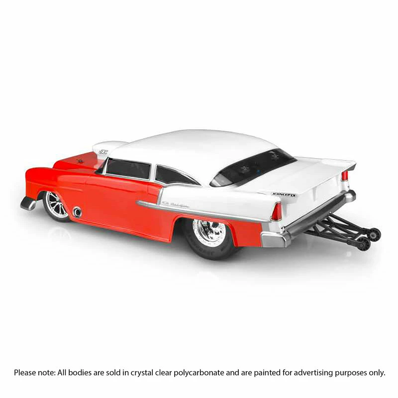 Included in each body set, a 1955 Chevy Bel Air decal sheet, rear wing option including lower support and upper wing spoiler and the paint mask for all windows. A front hood-scoop is also part of each body set and ready for trim, fit and finishing. As always, each body set is backed with JConcepts customer support and racing heritage.