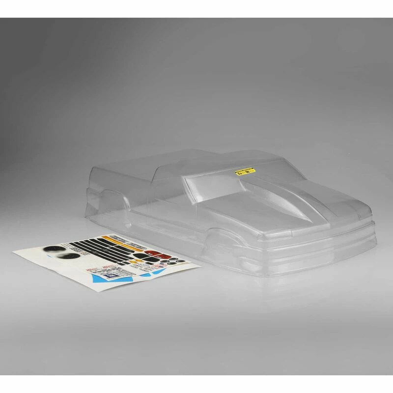 JConcepts has included a heavy hood-scoop touching off against the windshield and rounding into the front-end until tangency hits. The 13” wheelbase is positioned allowing flexibility on a variety of chassis builds including custom and Team Associated’s new DR10 vehicle. Fender flares are built into the rocker panel just as the scale S-10 and just open and flare enough to house drag racing tires such as the JConcepts Hotties.
