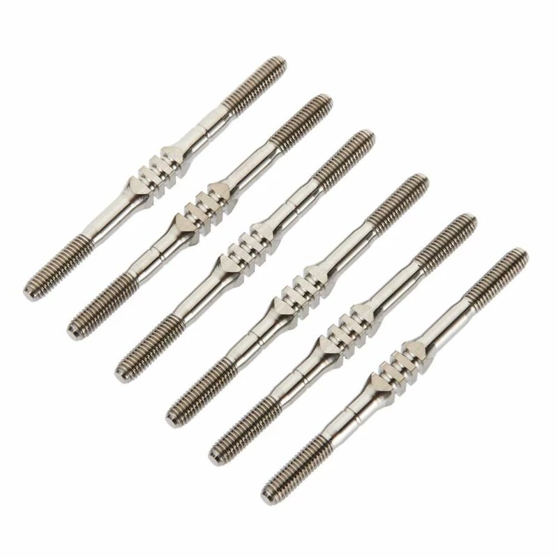 JConcepts is Titanium with the introduction of the Fin turnbuckle sets designed specifically for style, durability and performance. The base of the six main suspension turnbuckles designed for the Team Associated B6, B6D, B6.2, and B6.3. The light-weight yet durable material is gradually machined down and tapers into a thread base design which accepts the rod ends featured in the kit.