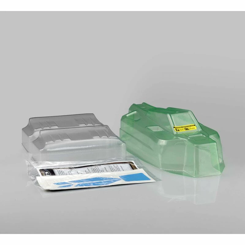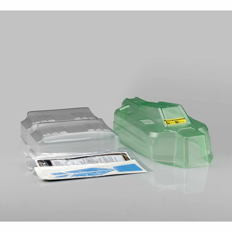 Slammed overall height allows the S2 to whisk through the turns with a low center of mass while the progressive cab design provides plenty of front-end force for superior balance and steering. A channeled roof directs the flow through the center of the body while also increasing the rigidity of cockpit. The dual side-window design that has become famous on the JConcepts bodies remains to bring a traditional feel to the layout.